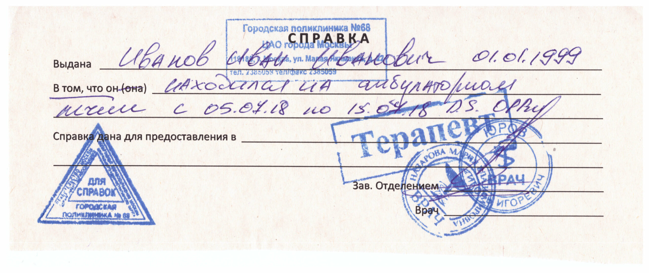 Так можно купить справку от терапевта в течение дня, а если она нужна срочно – за 2 часа. Все анонимно, без разглашения сведений о наших клиентах. Это хорошая альтернатива клинике, которая будет оформлять вам бланк неделю, а может быть и дольше.